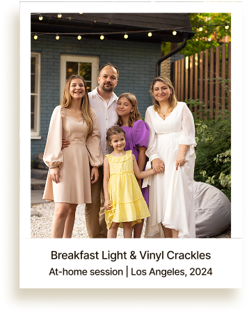 At-home sessions for couples or families — vintage kitchen tiles, coffee steam, laughter in soft window light. Raw, honest, and forever nostalgic.